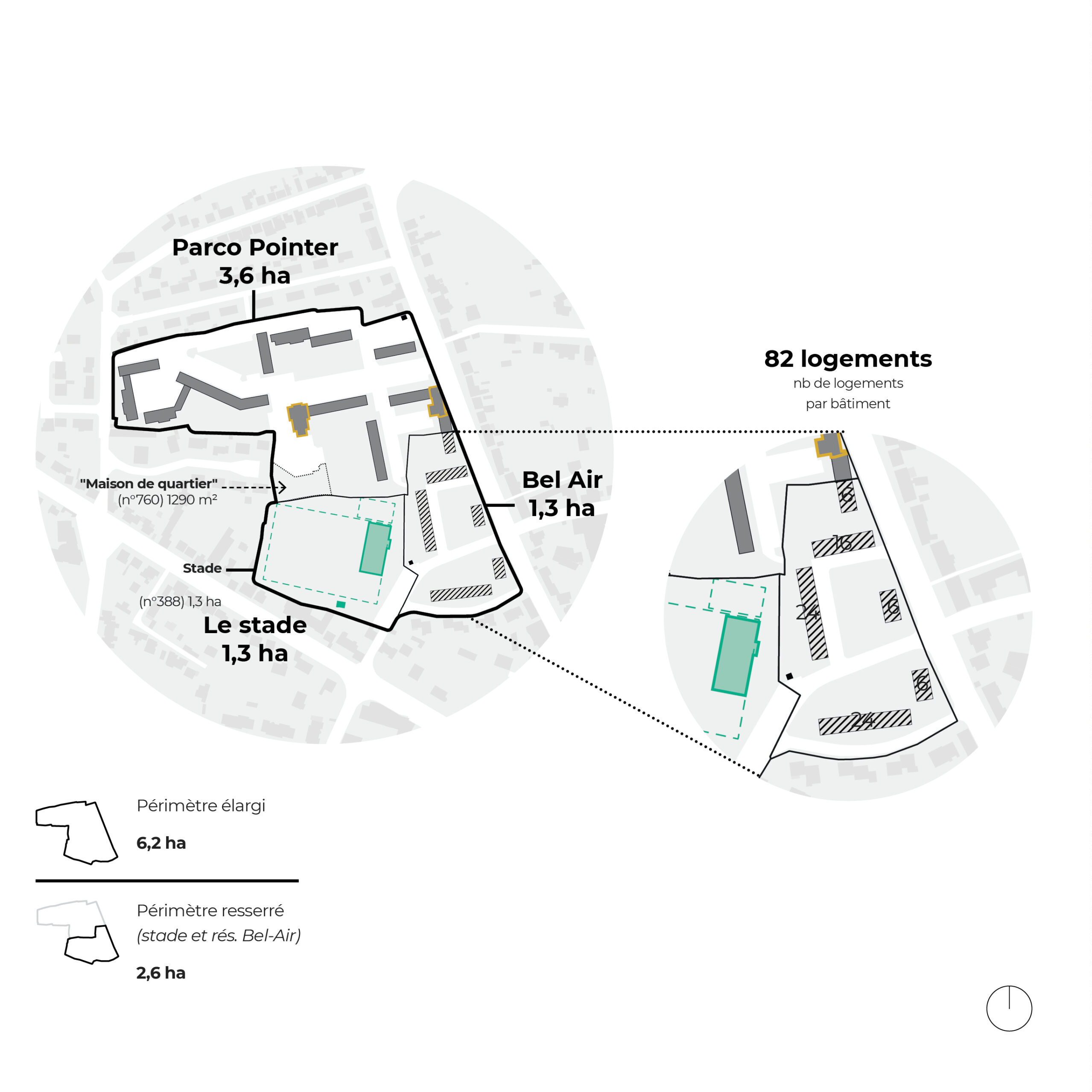 C’est dans ce contexte que le bailleur et la Ville ont souhaité réinterroger les scénarios initialement envisagés dans le cadre d’une réflexion globale à l’échelle du quartier Parco-Pointer/Bel-Air.