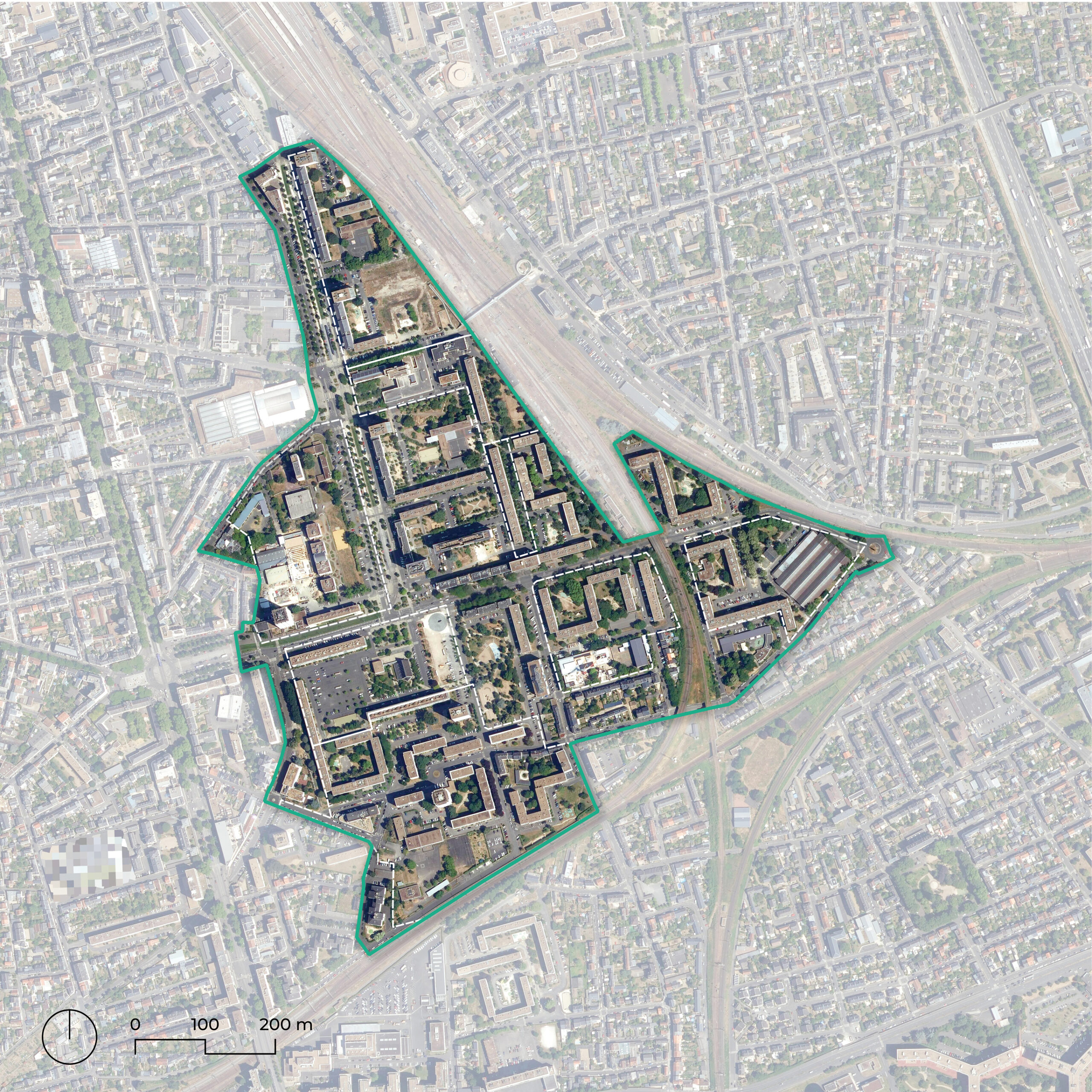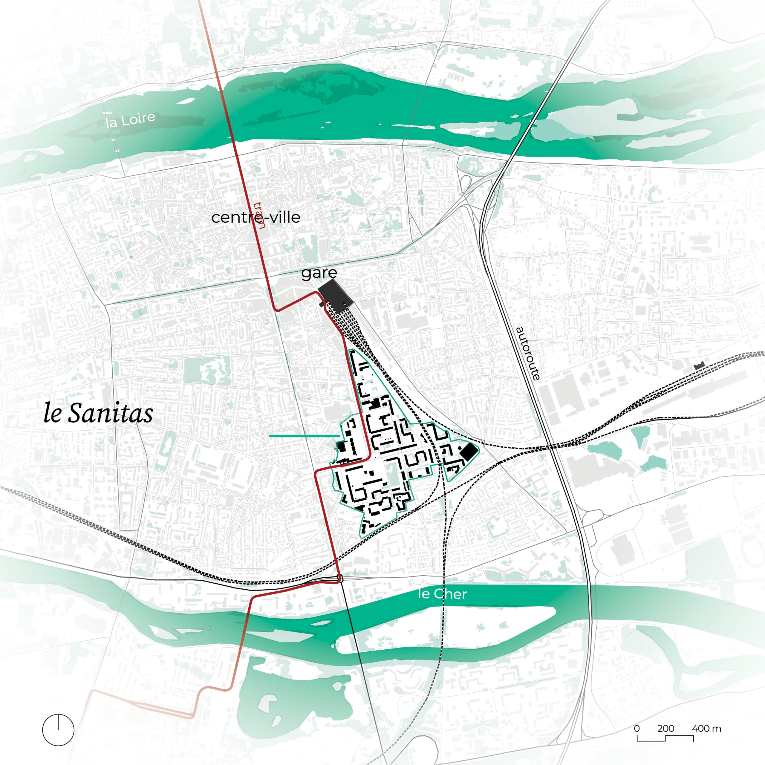 Construit entre les années 1950 et 1970 sur d’anciennes emprises ferroviaires, le Sanitas est un vaste quartier de 42 hectares, idéalement situé à deux pas du centre-ville, de l’avenue Grammont et de la gare de Tours. Bien que perçu comme un ensemble homogène, il est structuré en huit secteurs délimités notamment par deux grands axes et les talus ferroviaires.