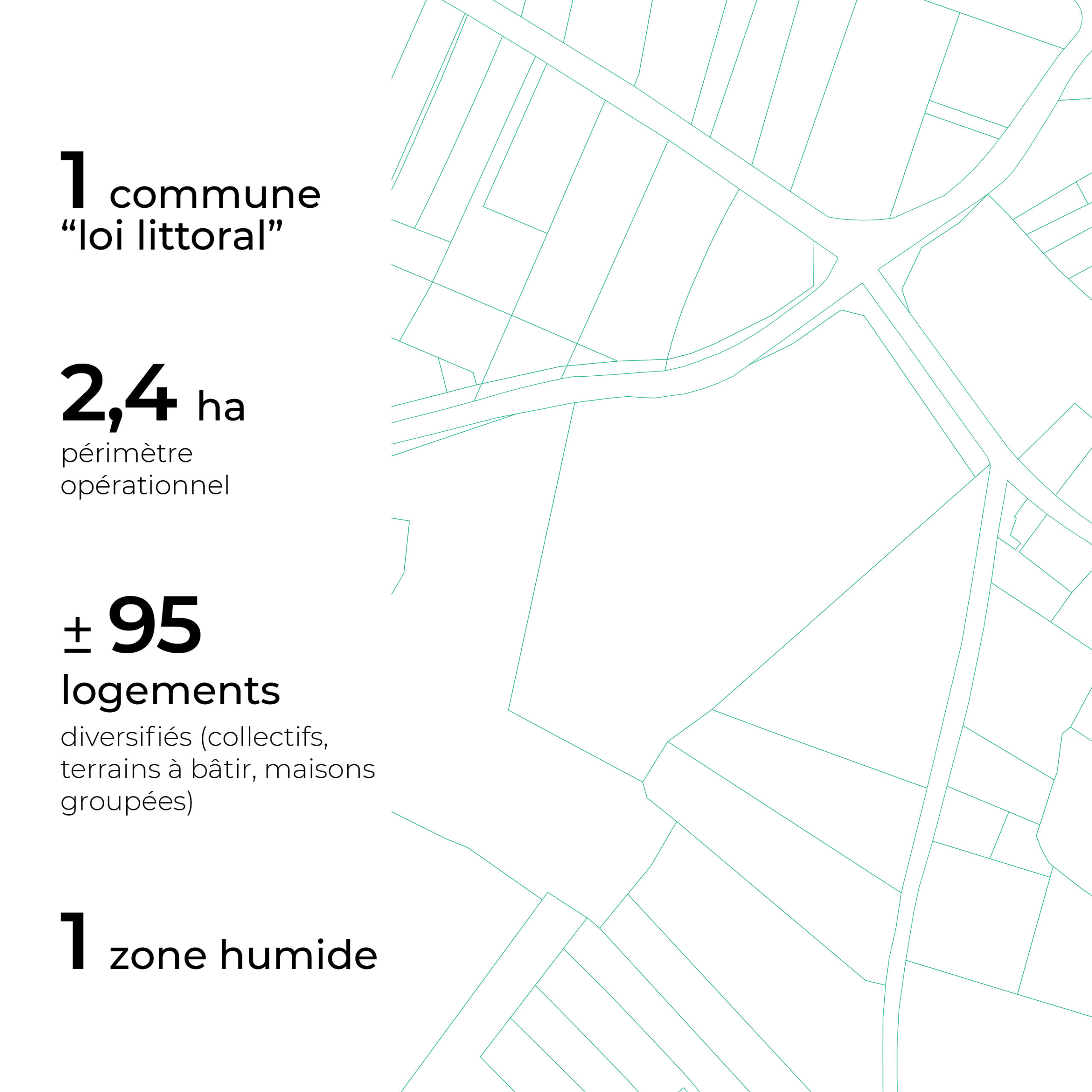 Les éléments structurants du projet sont guidés par les paramètres constituants du site ( Zones humides, haies, orientation, coulée verte en projet, …). Ils sont autant de marqueurs guidant la conception, dans le souci d’une intégration du projet au plus près de son contexte et de s’inscrire dans la logique «éviter, réduire, compenser».